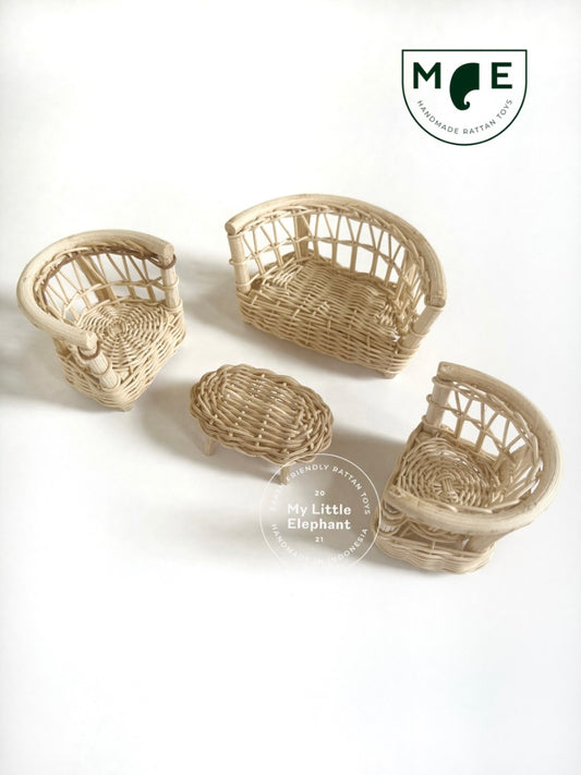 Stap binnen in de kleine, magische wereld van onze rotan miniatuurwereld. Met zorg en liefde handgemaakt, brengen deze miniatuurmeubeltjes en sfeervolle decoraties een natuurlijke touch aan het poppenhuis van je kleintje. Elk stuk is een klein kunstwerkje dat de fantasie prikkelt en uren speelplezier geeft.